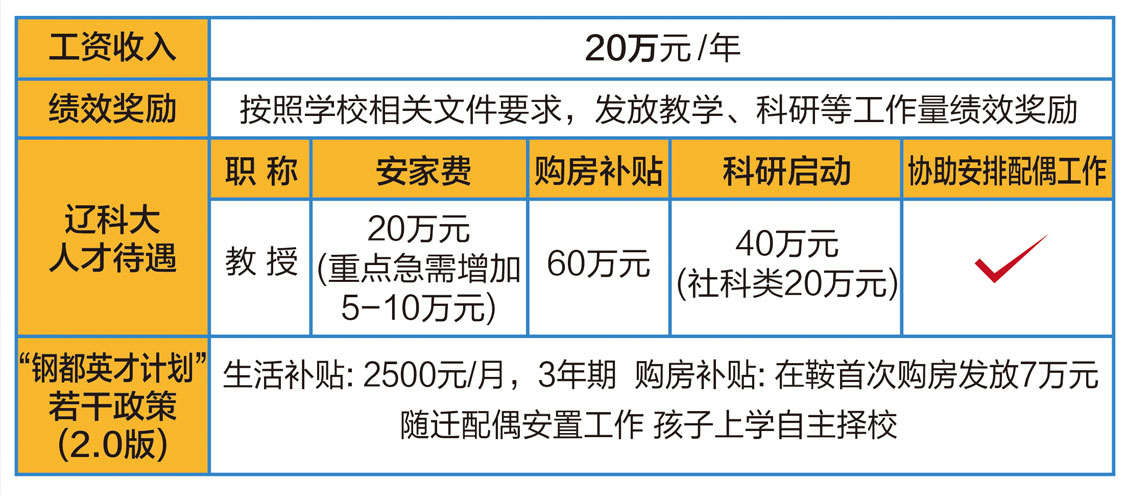 首聘期年薪、安家费、购房补贴、科研建设经费等待遇面议,并协助安排配偶工作。