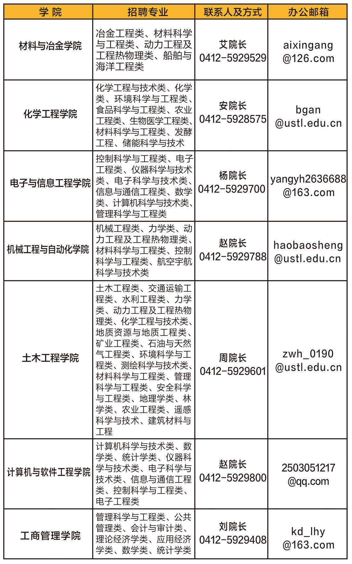三、学院招聘需求及联系方式