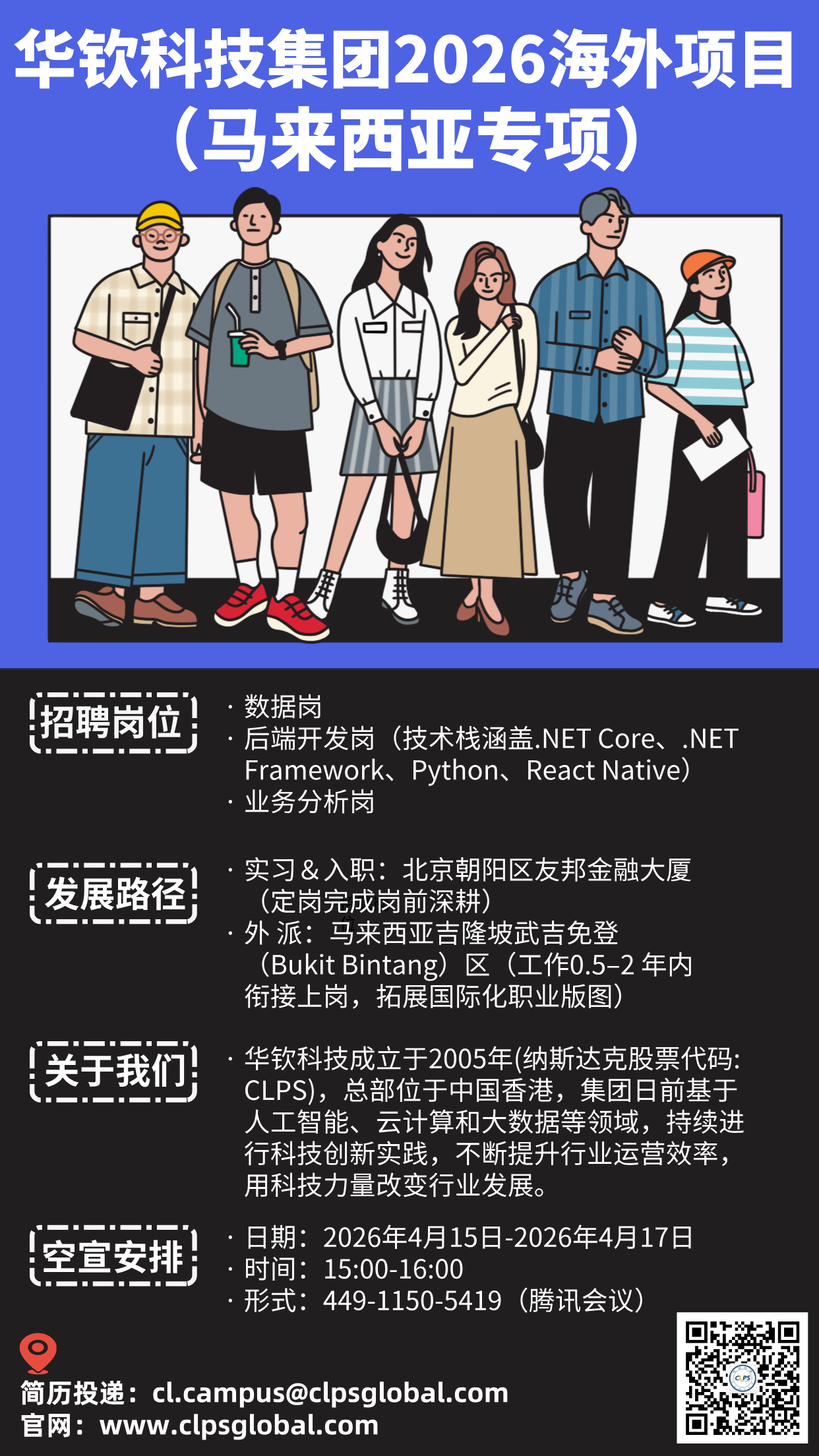 投递邮箱:cl.campus@clpsglobal.com (附件请包含简历及CET-4/CET-6成绩单)招聘岗位:数据岗/后端开发岗(技术栈涵盖.NET C...
